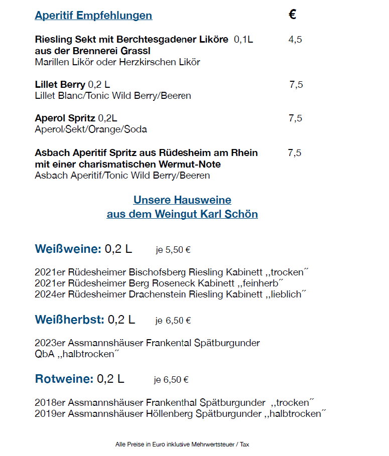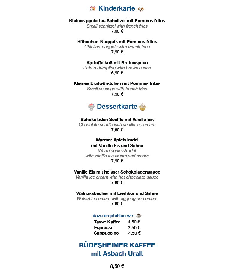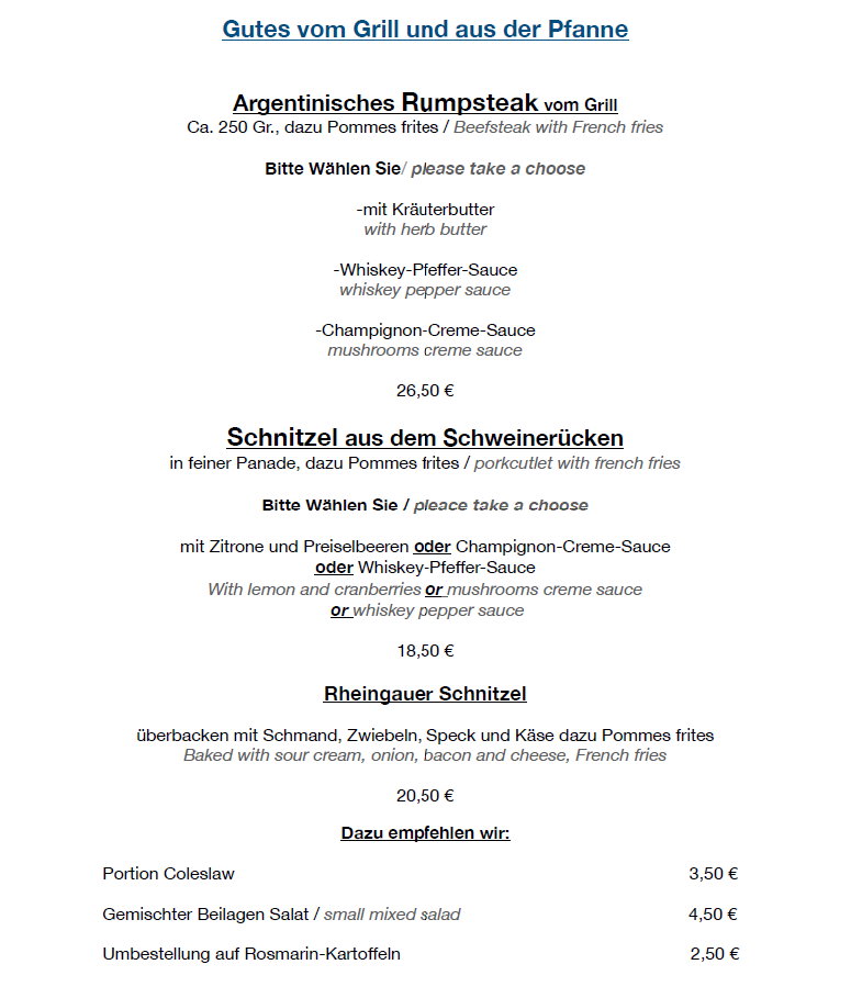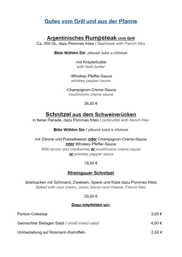 In Rüdesheim am Rhein – der kleinen Stadt mit dem großen Namen – bieten wir Ihnen direkt im Zentrum, nur wenige Schritte von der Drosselgasse und der Seilbahntalstation entfernt, eine abwechslungsreiche Küche und gastfreundlichen Service.